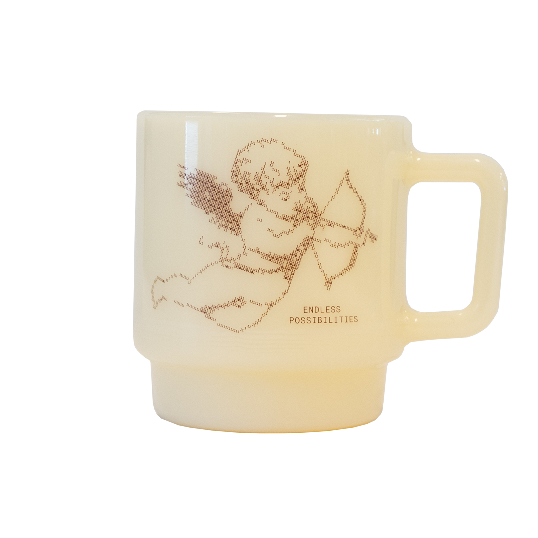 Every Cupid Olde Milk mug is individually pressed by a Japanese glass artisan using a traditional mold-press method. The soft whitish lines on the surface come from natural temperature shifts as the molten glass is pressed a subtle hallmark of genuine handmade glass that makes each Cupid mug slightly different from the next.